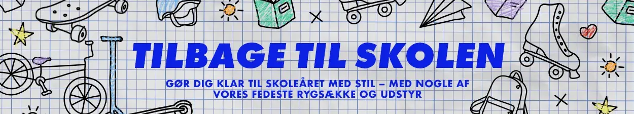 Opdag dine vigtigste ting til skolestart hos SkatePro: tøj, rygsække, skateboards, løbehjul, BMX og meget mere!